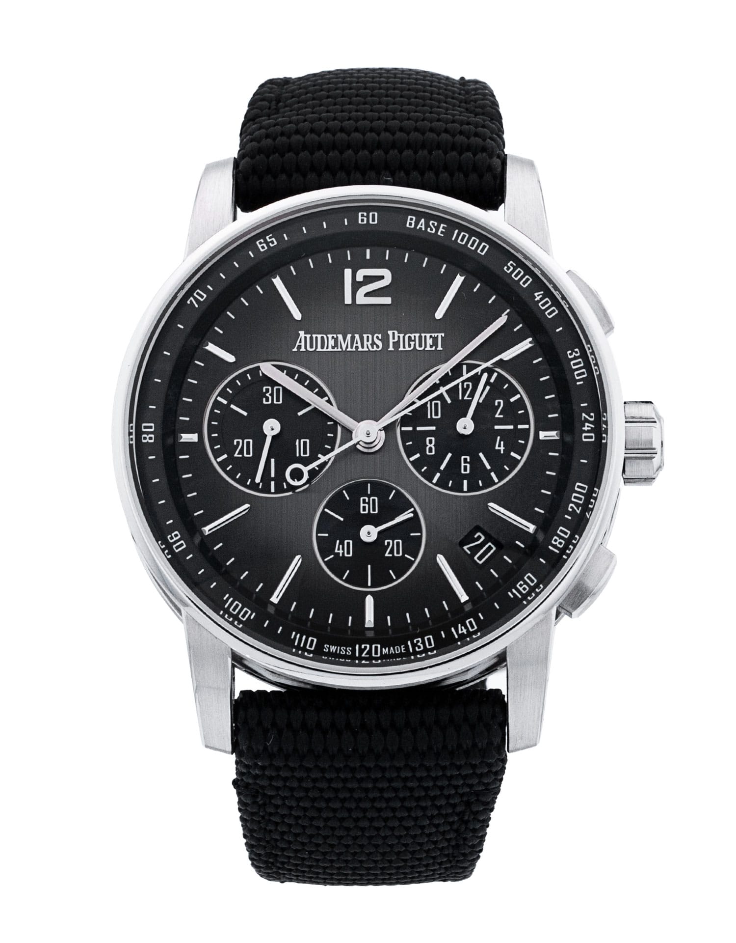 This Audemars Piguet CODE 11.59 26393NB.OO.A002KB.01 has a dark grey baton dial and a fabric strap. This Audemars Piguet has undergone a thorough inspection of accuracy, functionality and condition at our Audemars Piguet certified service centre to determine the level of reconditioning required to meet our strict standards. It has also been checked against our records to ensure authenticity. Our watches have a 24-month warranty for your peace of mind, in conjunction with any remaining manufacturer’s warranty from new or from service.