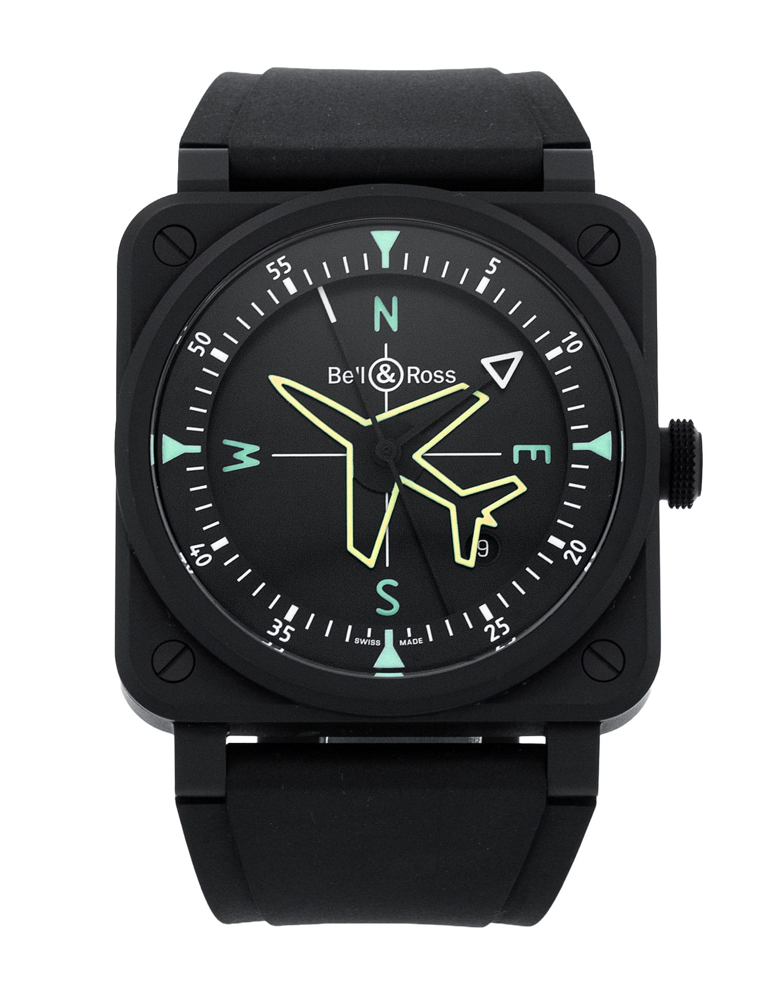 This Bell and Ross BR 03 BR03A-CPS-CE/SRB has a black dial and a rubber strap. This Bell and Ross has undergone a thorough inspection of water resistance, accuracy, functionality and condition to determine the level of reconditioning required to meet our strict standards. It has also been referenced against technical documents and manufacturer records where available to ensure authenticity and a clean history. All our watches have a 24-month warranty for your peace of mind.