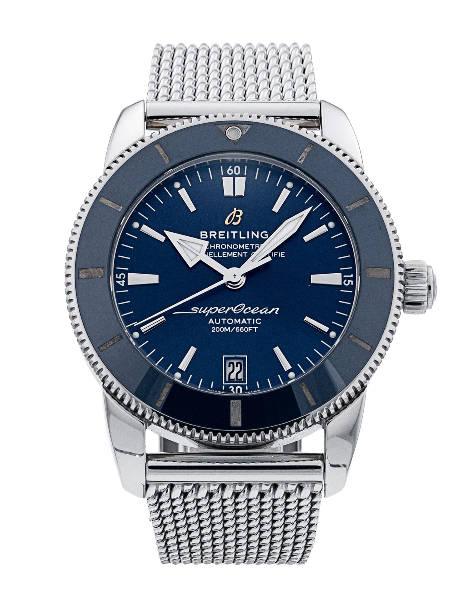 This Breitling SuperOcean Heritage B20 Automatic 42 AB2010 has a blue baton dial and a bracelet strap. This Breitling has undergone a thorough inspection of water resistance, accuracy, functionality and condition to determine the level of reconditioning required to meet our strict standards. It has also been referenced against technical documents and manufacturer records where available to ensure authenticity and a clean history. Our watches have a 24-month warranty for your peace of mind, in conjunction with any remaining manufacturer’s warranty from new or from service.