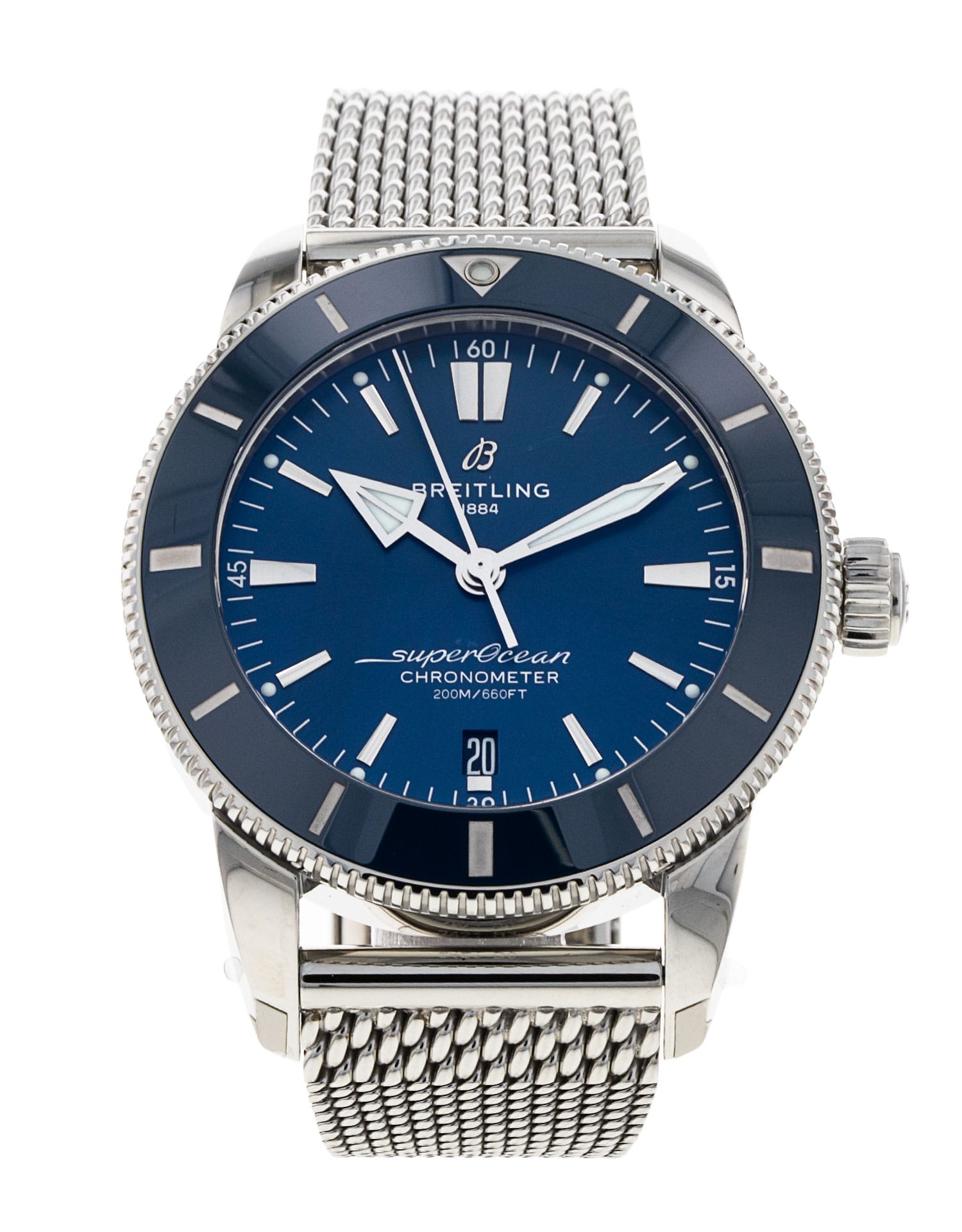 This Breitling SuperOcean Heritage II 44 AB2030 has a blue baton dial and a bracelet strap. This Breitling has undergone a thorough inspection of water resistance, accuracy, functionality and condition to determine the level of reconditioning required to meet our strict standards. It has also been referenced against technical documents and manufacturer records where available to ensure authenticity and a clean history. Our watches have a 24-month warranty for your peace of mind, in conjunction with any remaining manufacturer’s warranty from new or from service.