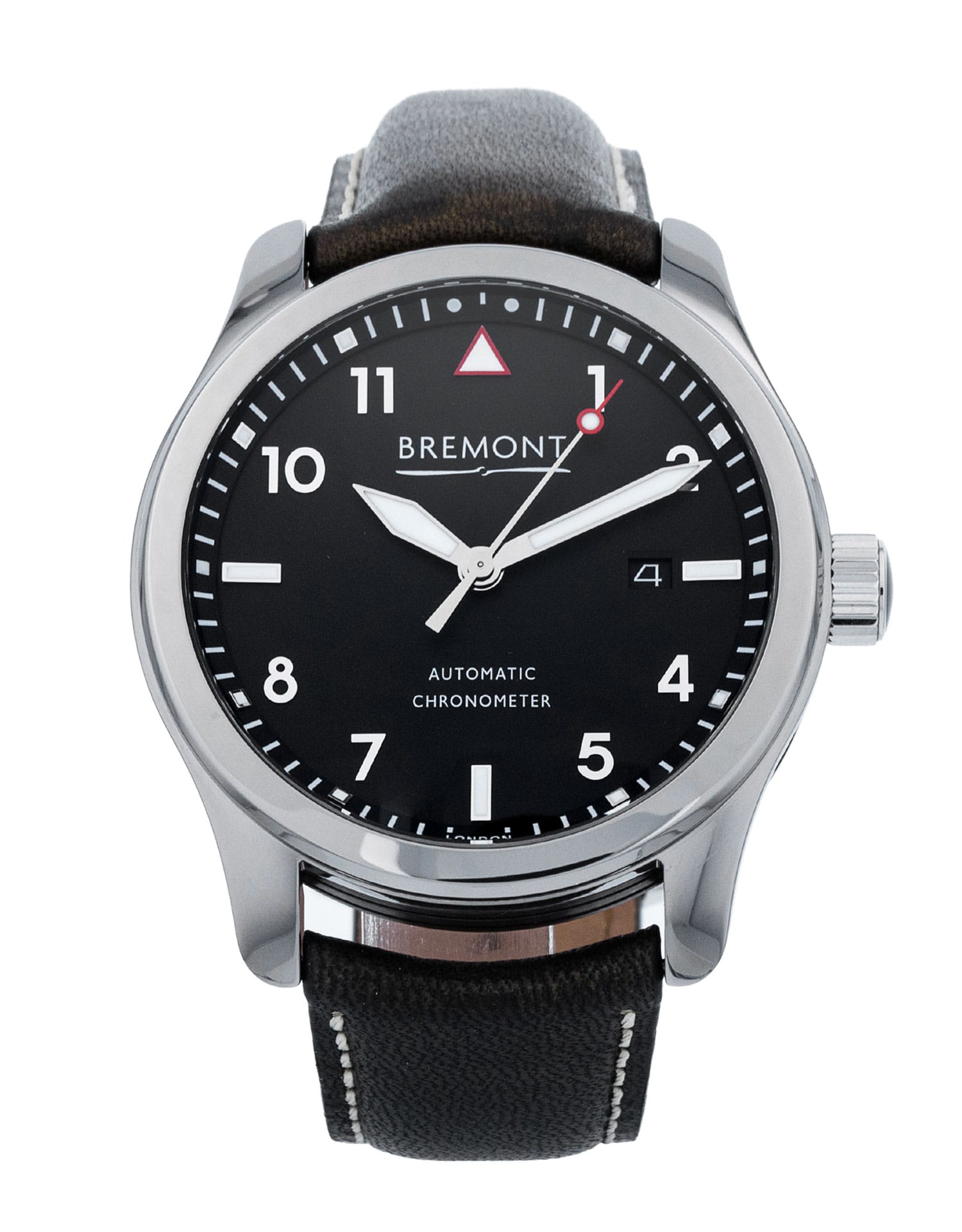 This Bremont Solo SOLO/PB has a black arabic dial and a leather strap. This Bremont has undergone a thorough inspection of water resistance, accuracy, functionality and condition to determine the level of reconditioning required to meet our strict standards. It has also been referenced against technical documents and manufacturer records where available to ensure authenticity and a clean history. All our watches have a 24-month warranty for your peace of mind.