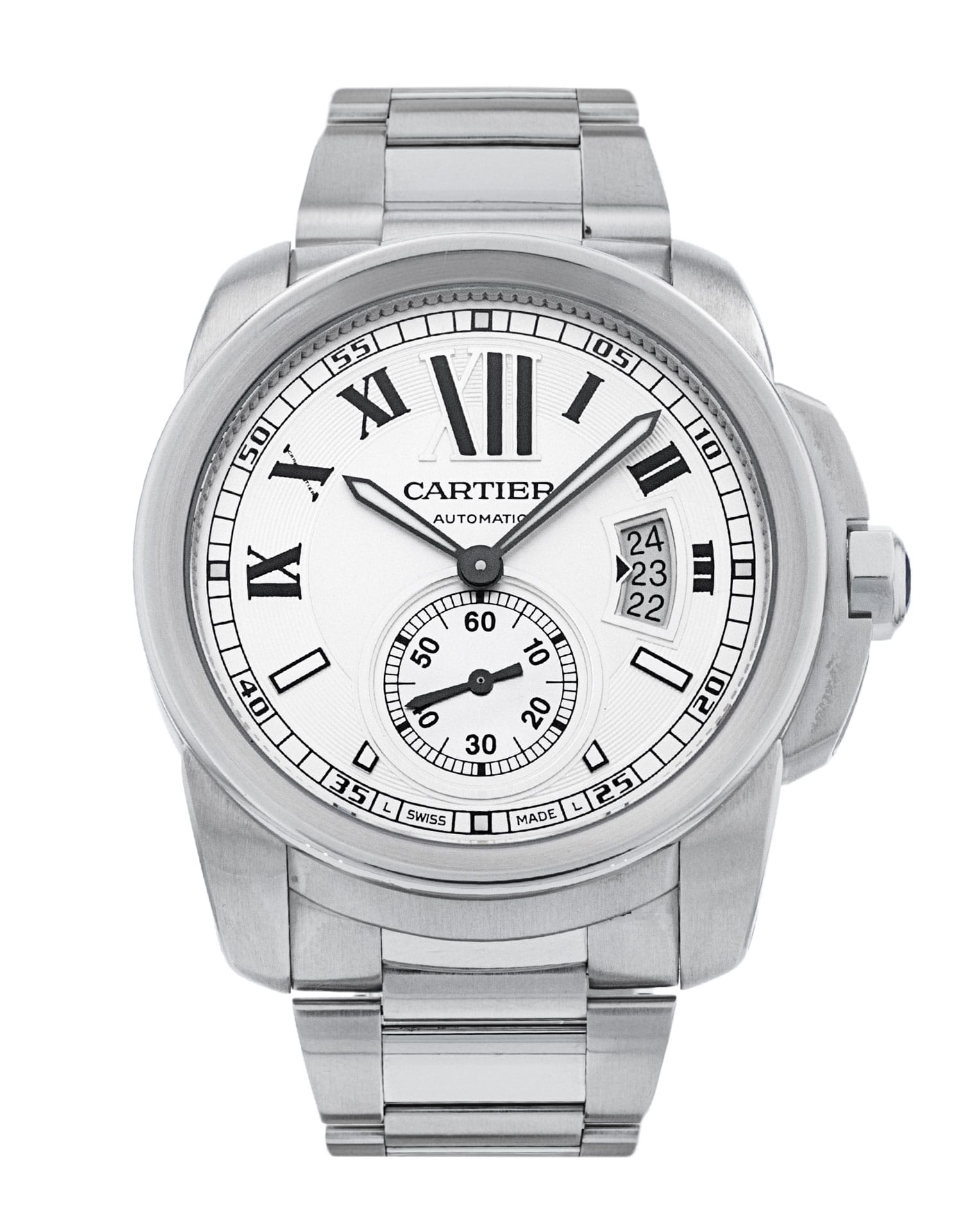 This Cartier Calibre De Cartier W7100015 has a silver roman numeral dial and a bracelet strap. This Cartier has undergone a thorough inspection of accuracy, functionality and condition at our Cartier certified service centre to determine the level of reconditioning required to meet our strict standards. It has also been checked against our records to ensure authenticity. All our watches have a 24-month warranty for your peace of mind.