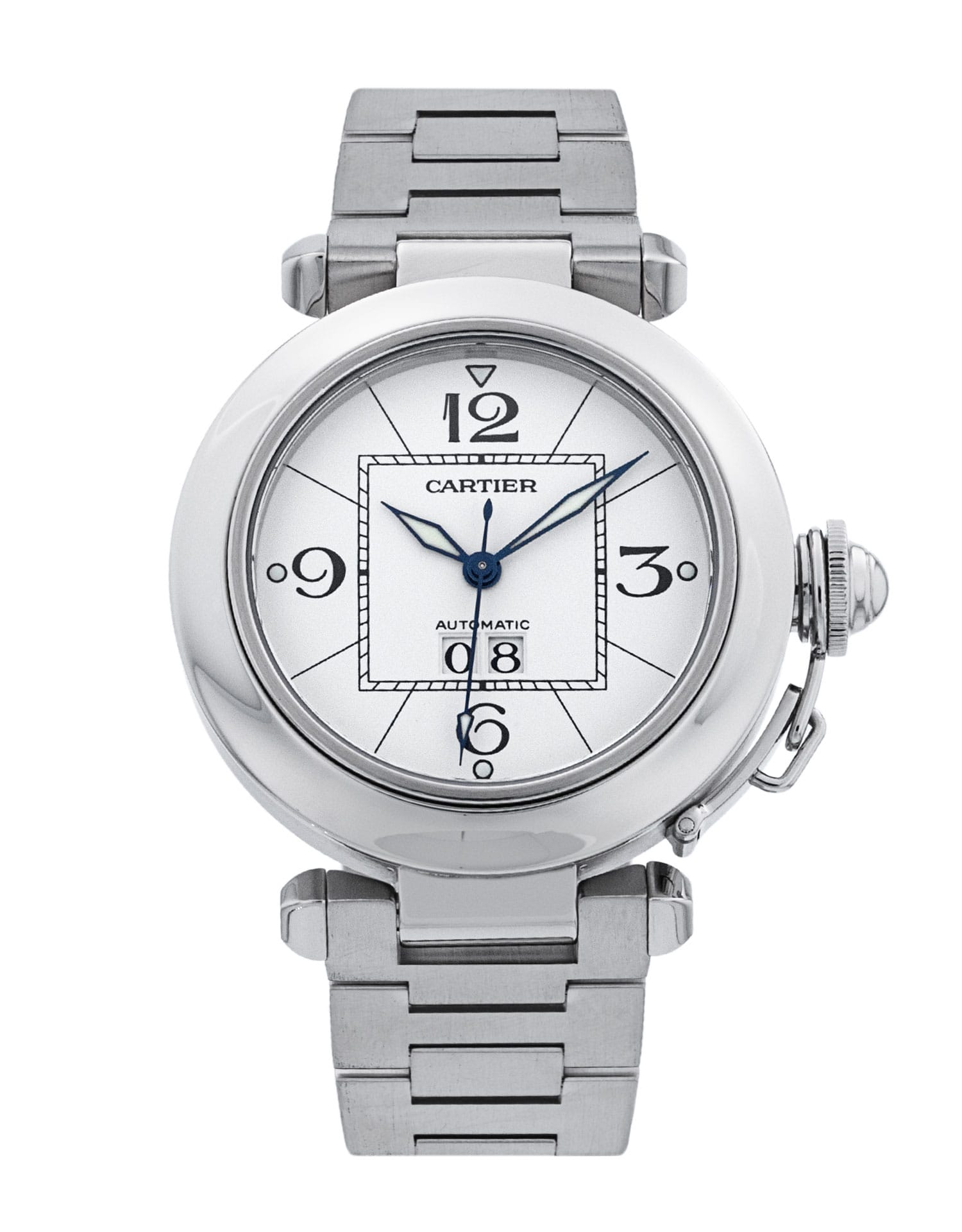 This Cartier Pasha W31055M7 has a white quarter arabic dial and a bracelet strap. This Cartier has undergone a thorough inspection of accuracy, functionality and condition at our Cartier certified service centre to determine the level of reconditioning required to meet our strict standards. It has also been checked against our records to ensure authenticity. All our watches have a 24-month warranty for your peace of mind.