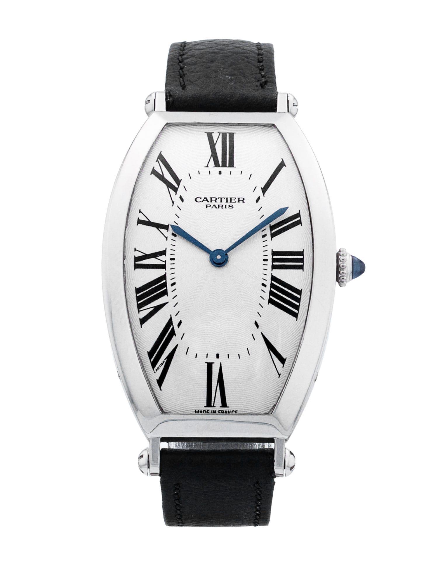 This Cartier Tonneau W1528151 has a silver roman numeral dial and a leather strap. This Cartier has undergone a thorough inspection of accuracy, functionality and condition at our Cartier certified service centre to determine the level of reconditioning required to meet our strict standards. It has also been checked against our records to ensure authenticity. All our watches have a 24-month warranty for your peace of mind.
