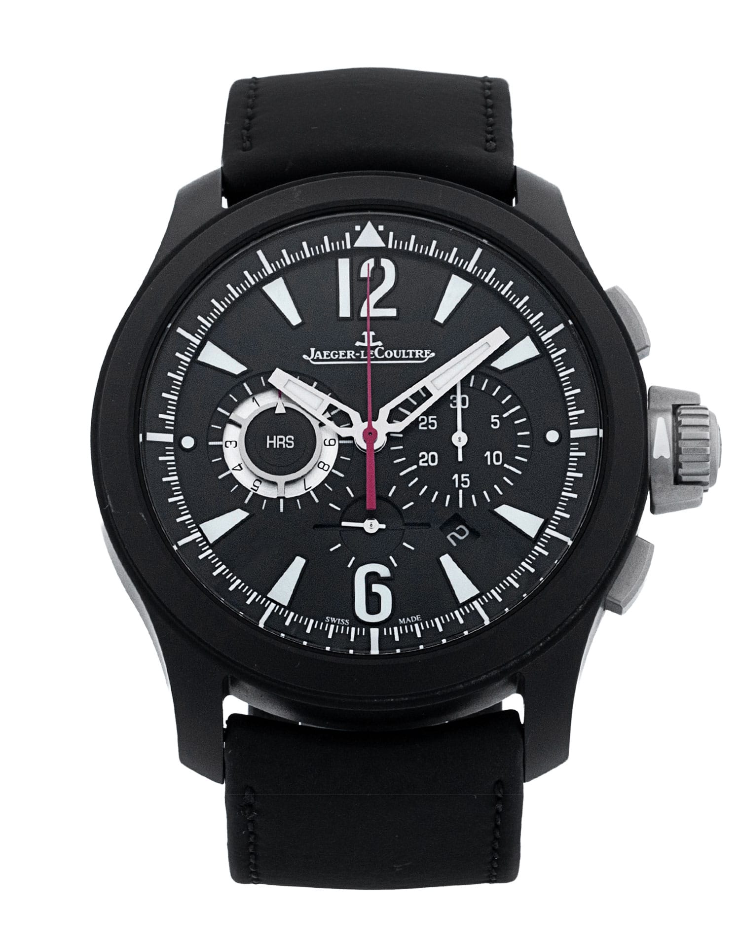 This exceptional chronograph from the Master Compressor collection of Jaeger-LeCoultre, one of Switzerland's most prestigious and desirable watch brands, has many stand-out features. The energetic-yet-elegant white and black design is immediately attention grabbing, and closer inspection only reveals yet greater marvels. The calibre is Jaeger's very own 751F, one of the brand's first in-house automatic chronographs, using a vertical coupling system for extreme precision. This limited edition example is even more remarkable for its gorgeous black ceramic case and matching leather strap.