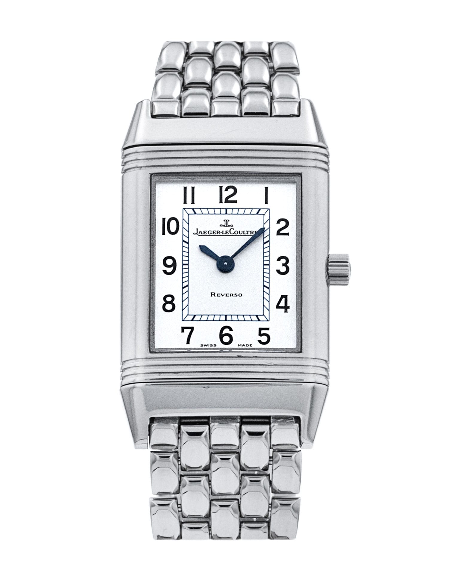 This Jaeger-LeCoultre Reverso Dame 2618110 has a silver arabic dial and a bracelet strap. This Jaeger-LeCoultre has undergone a thorough inspection of accuracy, functionality and condition at our Jaeger-LeCoultre certified service centre to determine the level of reconditioning required to meet our strict standards. It has also been checked against our records to ensure authenticity. All our watches have a 24-month warranty for your peace of mind.