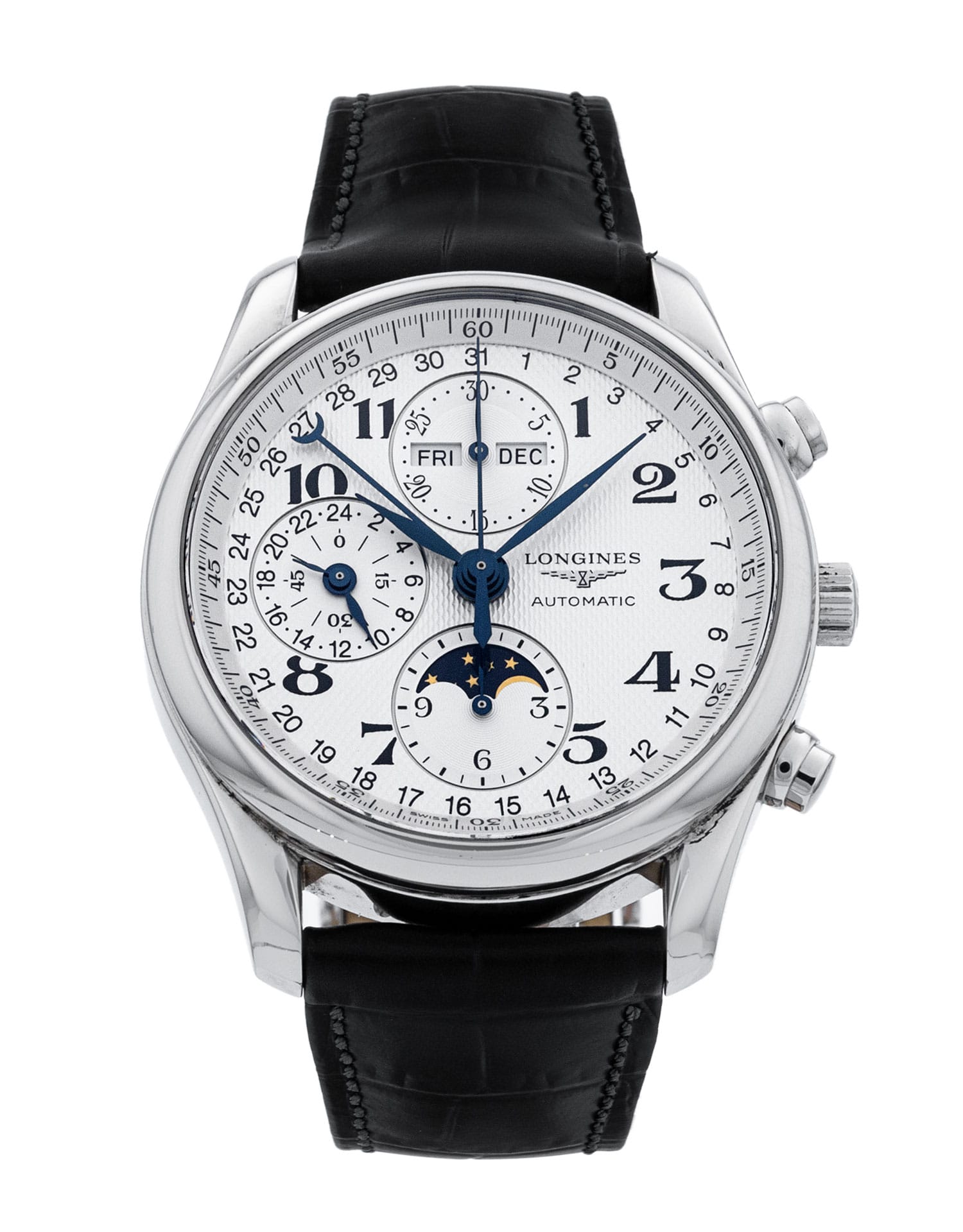 This Longines Master Collection L2.673.4.78.3 has a silver arabic dial and a leather strap. This Longines has undergone a thorough inspection of accuracy, functionality and condition at our Longines certified service centre to determine the level of reconditioning required to meet our strict standards. It has also been checked against our records to ensure authenticity. All our watches have a 24-month warranty for your peace of mind.