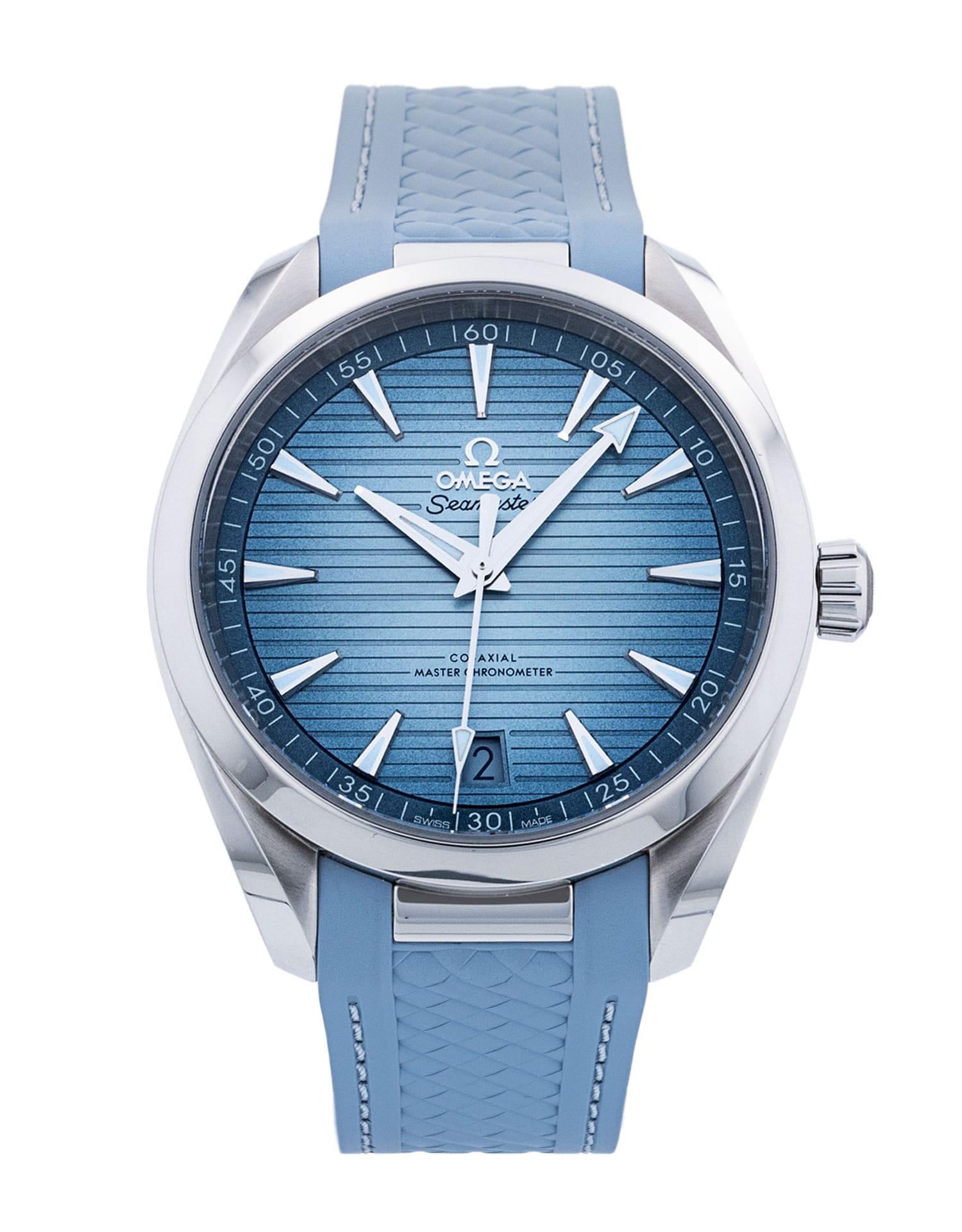 This Omega Aqua Terra 150m Gents 220.12.41.21.03.008 has a blue baton dial and a rubber strap. This Omega has undergone a thorough inspection of accuracy, functionality and condition at our Omega certified service centre to determine the level of reconditioning required to meet our strict standards. It has also been checked against our records to ensure authenticity. Our watches have a 24-month warranty for your peace of mind, in conjunction with any remaining manufacturer’s warranty from new or from service.