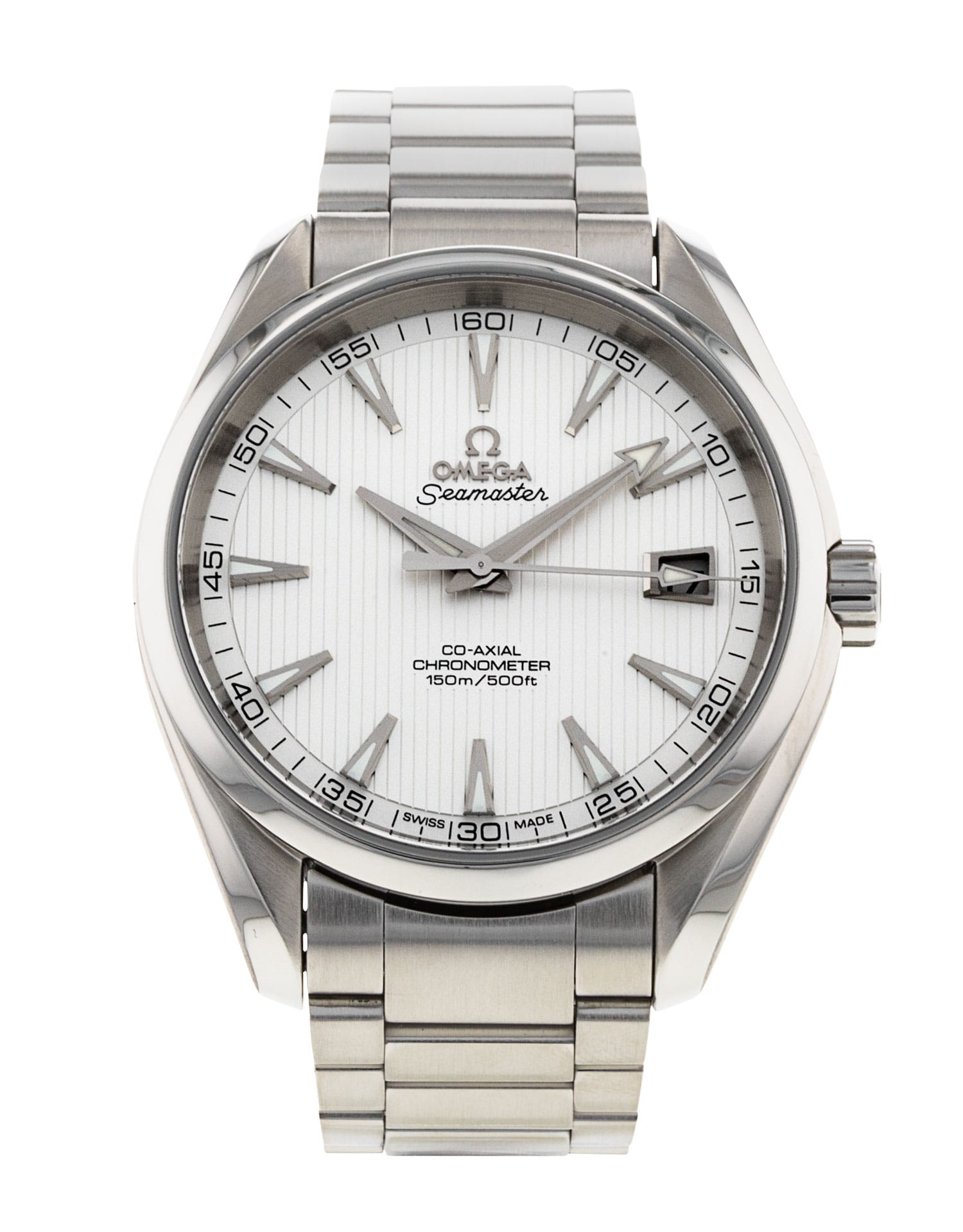 This Omega Aqua Terra 150m Gents 231.10.42.21.02.001 has a silver baton dial and a bracelet strap. This Omega has undergone a thorough inspection of accuracy, functionality and condition at our Omega certified service centre to determine the level of reconditioning required to meet our strict standards. It has also been checked against our records to ensure authenticity. All our watches have a 24-month warranty for your peace of mind.