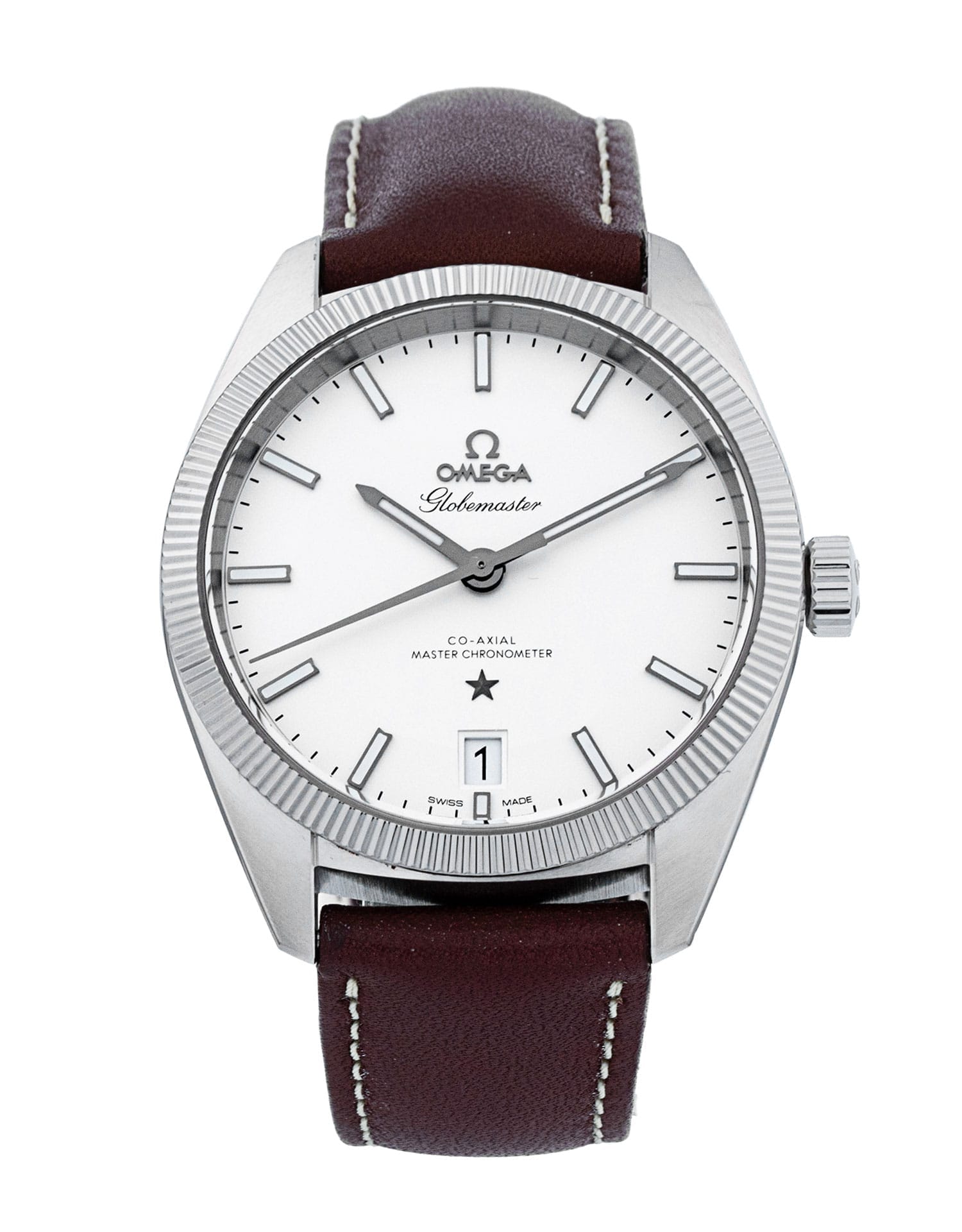 This Omega Constellation Globemaster 130.33.39.21.02.001 has a silver baton dial and a leather strap. This Omega has undergone a thorough inspection of accuracy, functionality and condition at our Omega certified service centre to determine the level of reconditioning required to meet our strict standards. It has also been checked against our records to ensure authenticity. All our watches have a 24-month warranty for your peace of mind.