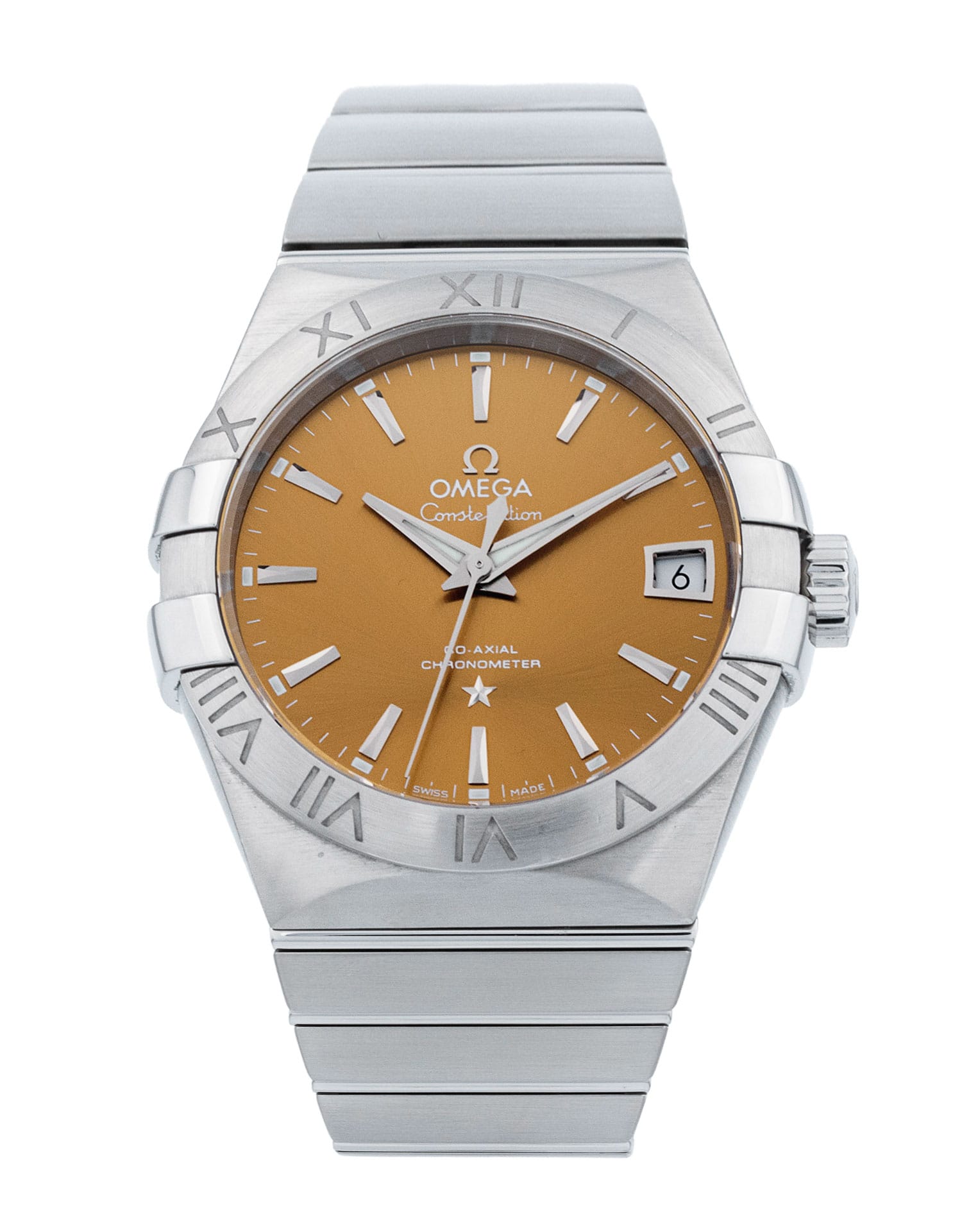 This Omega Constellation 123.10.38.21.10.001 has a bronze baton dial and a bracelet strap. This Omega has undergone a thorough inspection of accuracy, functionality and condition at our Omega certified service centre to determine the level of reconditioning required to meet our strict standards. It has also been checked against our records to ensure authenticity. Our watches have a 24-month warranty for your peace of mind, in conjunction with any remaining manufacturer’s warranty from new or from service.
