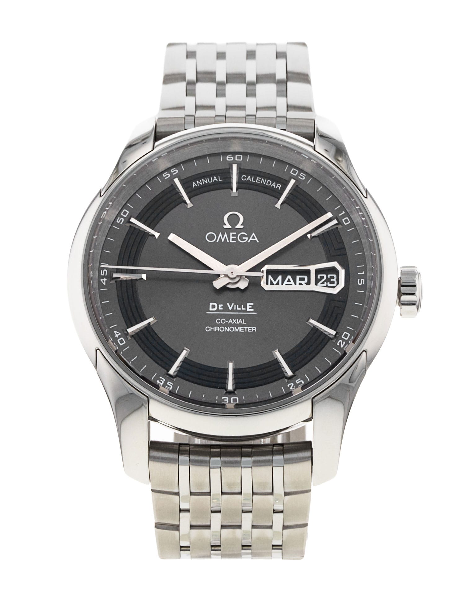 This Omega De Ville Hour Vision 431.30.41.22.06.001 has a black baton dial and a bracelet strap. This Omega has undergone a thorough inspection of accuracy, functionality and condition at our Omega certified service centre to determine the level of reconditioning required to meet our strict standards. It has also been checked against our records to ensure authenticity. All our watches have a 24-month warranty for your peace of mind.