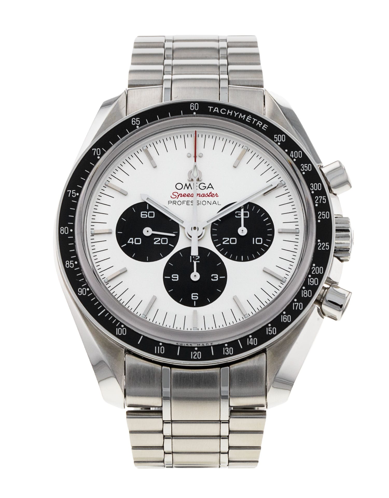 This Omega Olympic Speedmaster 522.30.42.30.04.001 has a silver dial and a bracelet strap. This Omega has undergone a thorough inspection of accuracy, functionality and condition at our Omega certified service centre to determine the level of reconditioning required to meet our strict standards. It has also been checked against our records to ensure authenticity. All our watches have a 24-month warranty for your peace of mind.