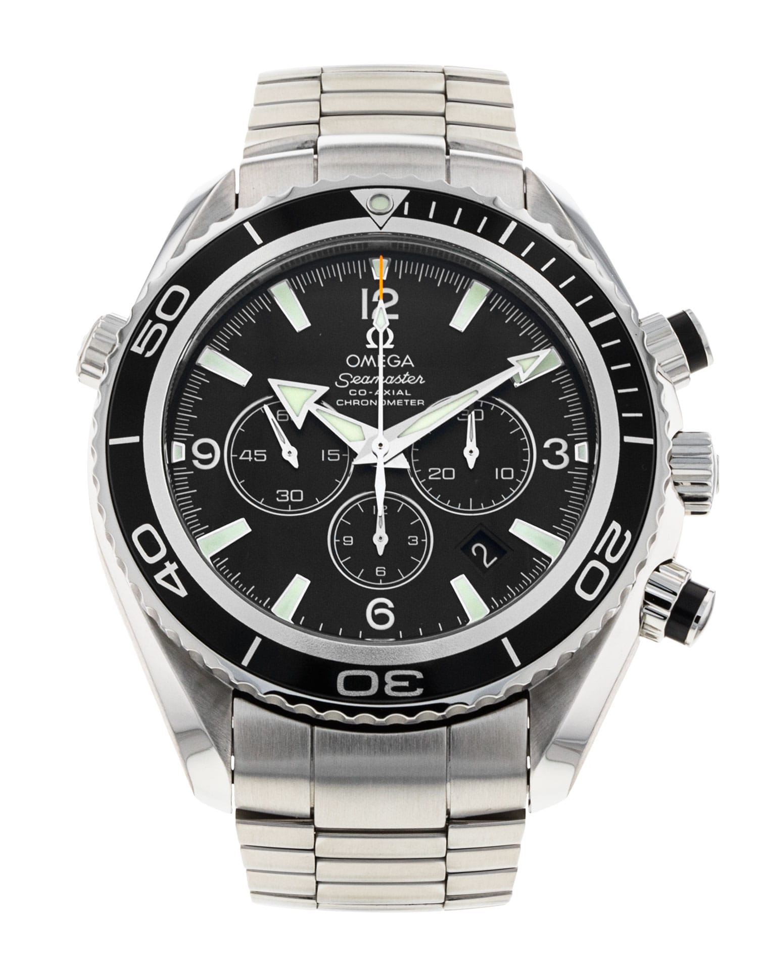 This Omega Planet Ocean 2210.50.00 has a black quarter arabic dial and a bracelet strap. This Omega has undergone a thorough inspection of accuracy, functionality and condition at our Omega certified service centre to determine the level of reconditioning required to meet our strict standards. It has also been checked against our records to ensure authenticity. All our watches have a 24-month warranty for your peace of mind.