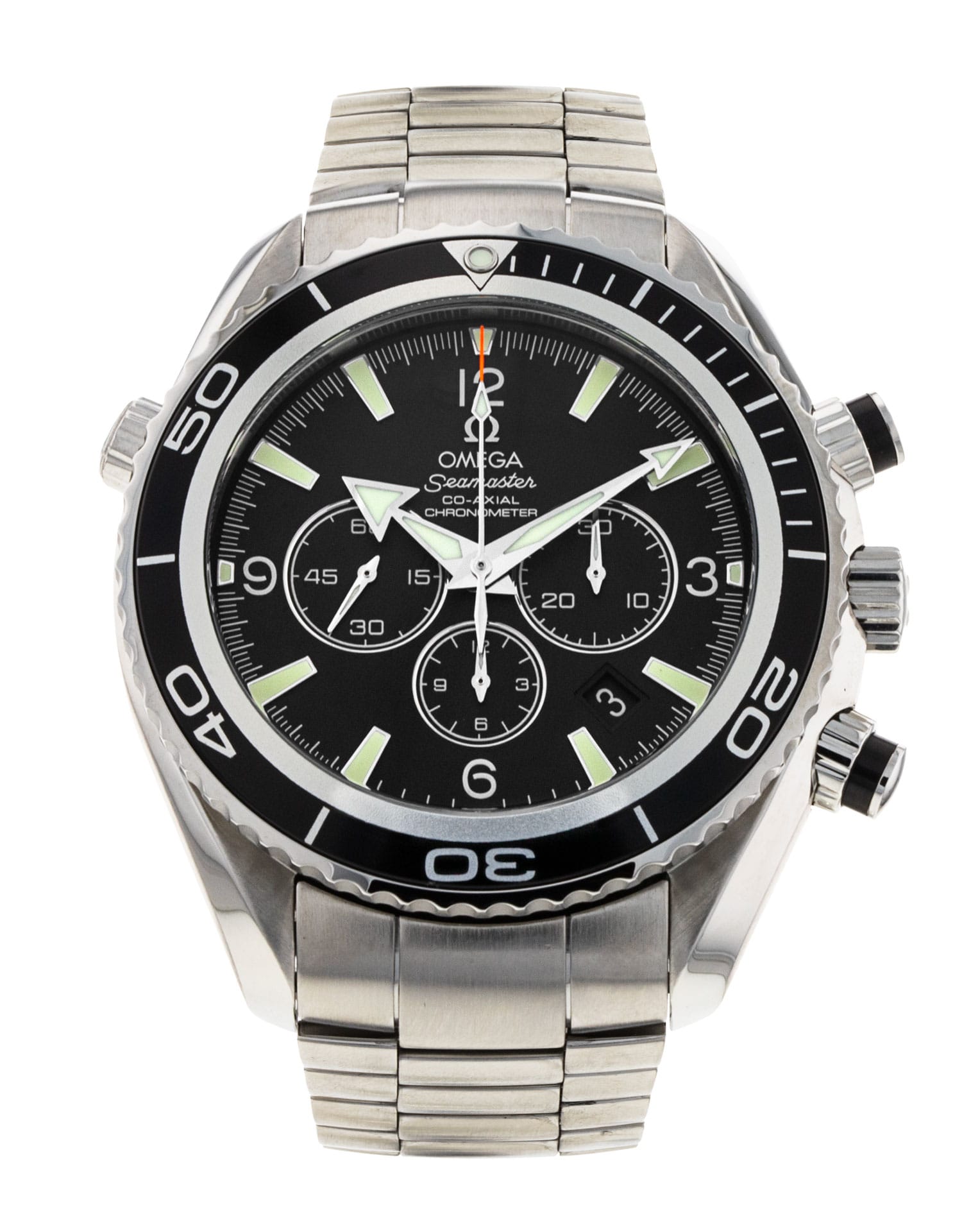 This Omega Planet Ocean 2210.50.00 has a black quarter arabic dial and a bracelet strap. This Omega has undergone a thorough inspection of accuracy, functionality and condition at our Omega certified service centre to determine the level of reconditioning required to meet our strict standards. It has also been checked against our records to ensure authenticity. All our watches have a 24-month warranty for your peace of mind.