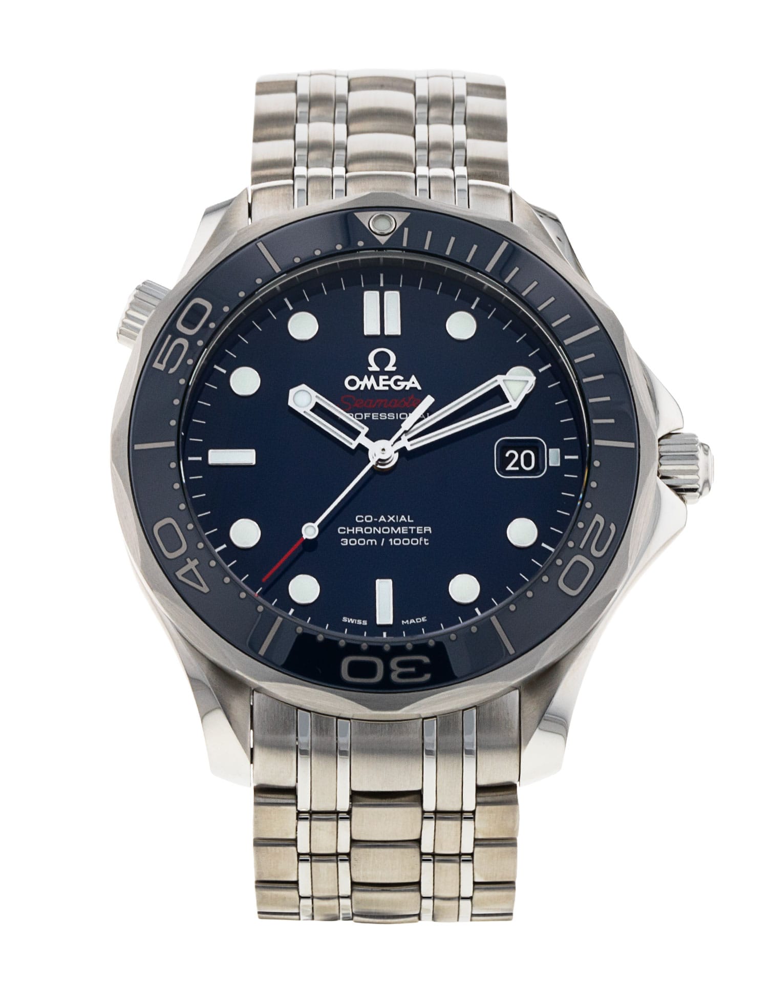 This Omega Seamaster 300m 212.30.41.20.03.001 has a blue dial and a bracelet strap. This Omega has undergone a thorough inspection of accuracy, functionality and condition at our Omega certified service centre to determine the level of reconditioning required to meet our strict standards. It has also been checked against our records to ensure authenticity. All our watches have a 24-month warranty for your peace of mind.