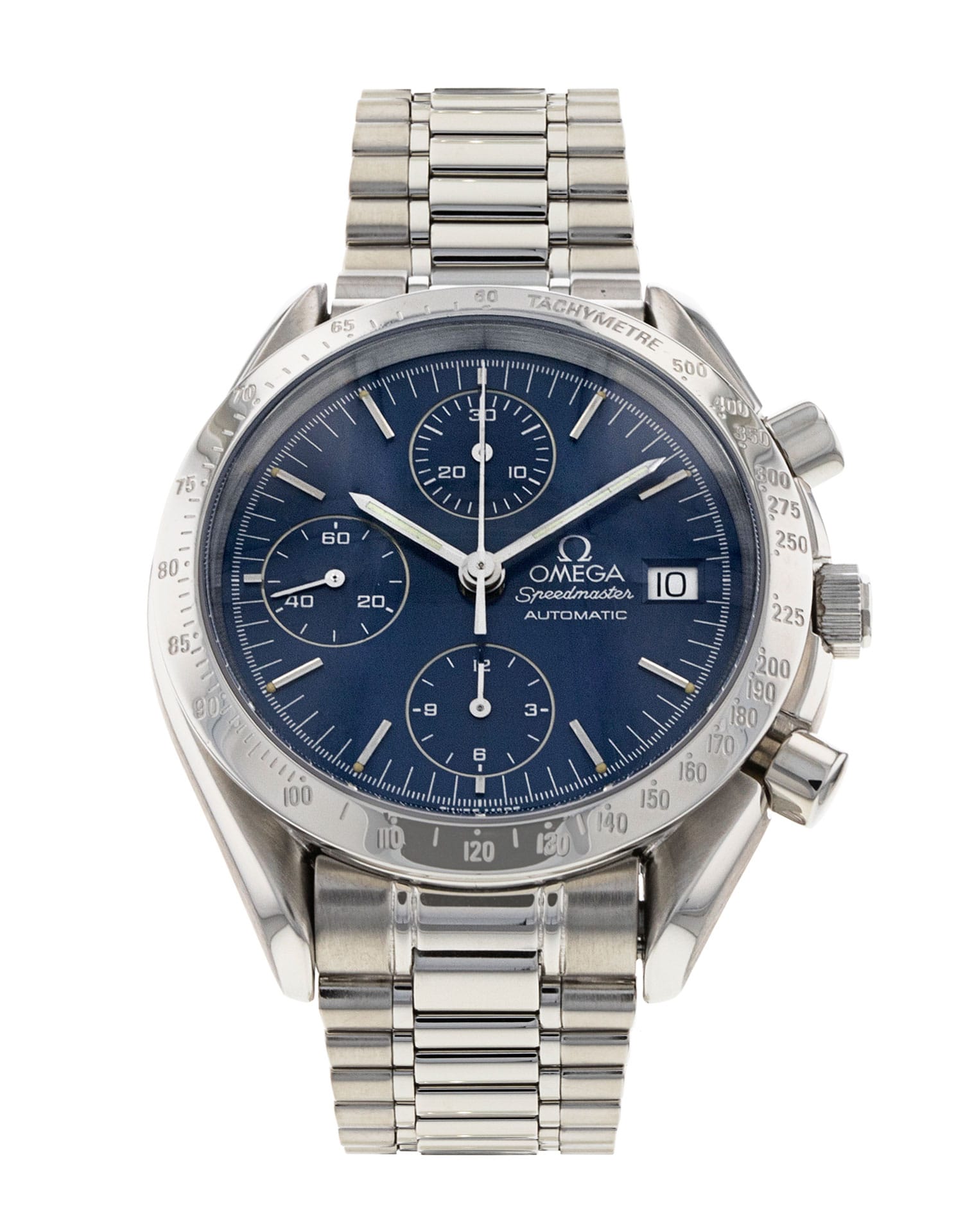 This Omega Speedmaster Date 3511.80.00 has a blue baton dial and a bracelet strap. This Omega has undergone a thorough inspection of accuracy, functionality and condition at our Omega certified service centre to determine the level of reconditioning required to meet our strict standards. It has also been checked against our records to ensure authenticity. All our watches have a 24-month warranty for your peace of mind.