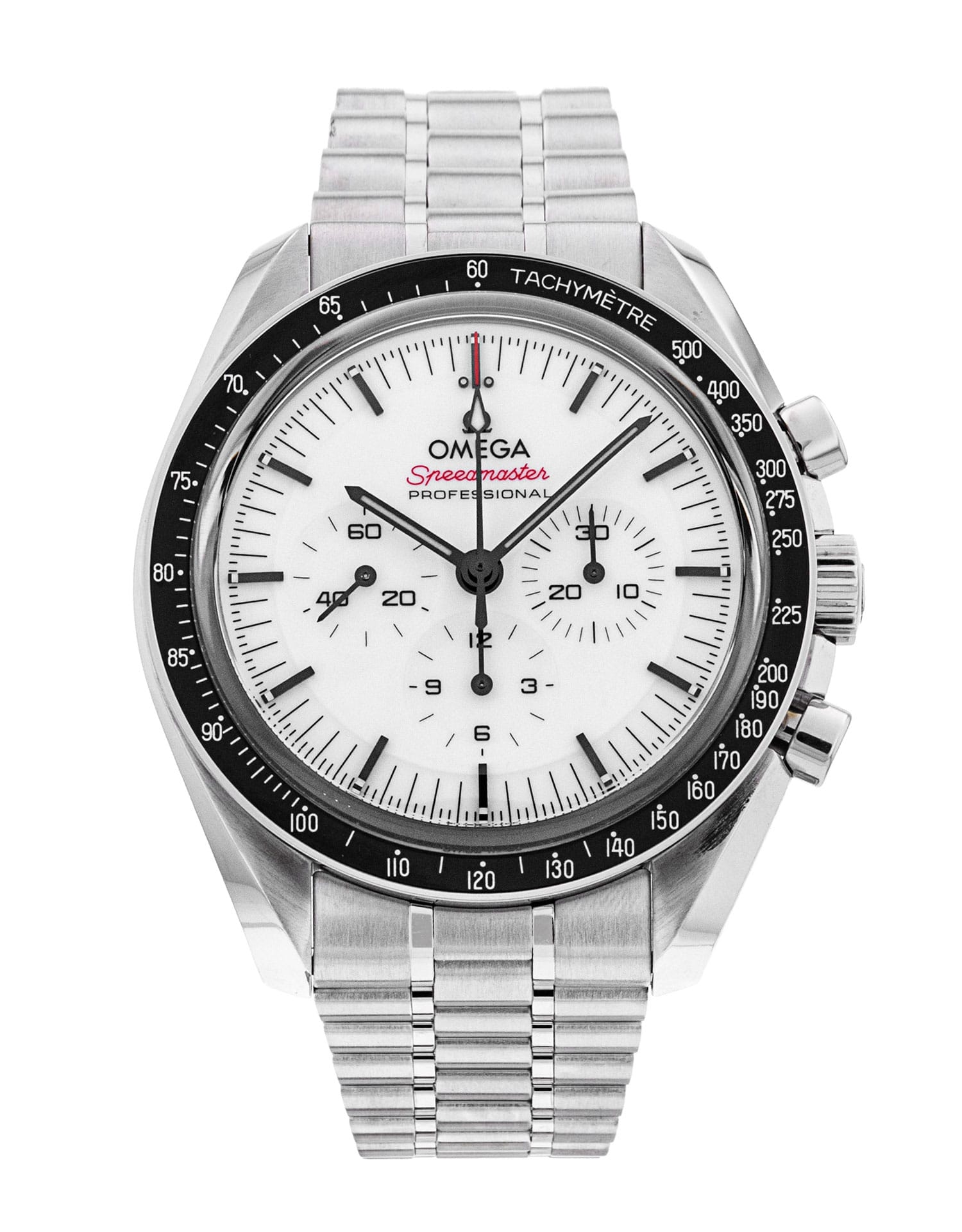 This Omega Speedmaster Moonwatch Professional 310.30.42.50.04.001 has a white baton dial and a bracelet strap. This Omega has undergone a thorough inspection of accuracy, functionality and condition at our Omega certified service centre to determine the level of reconditioning required to meet our strict standards. It has also been checked against our records to ensure authenticity. Our watches have a 24-month warranty for your peace of mind, in conjunction with any remaining manufacturer’s warranty from new or from service.