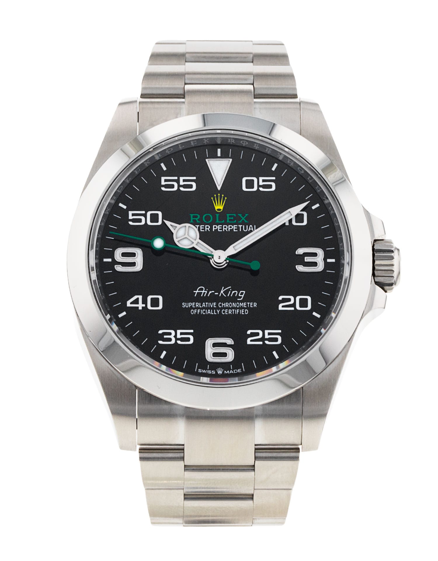 This Rolex Air-King 126900 has a black arabic dial and a bracelet strap. This Rolex has undergone a thorough inspection of water resistance, accuracy, functionality and condition to determine the level of reconditioning required to meet our strict standards. It has also been referenced against technical documents and manufacturer records where available to ensure authenticity and a clean history. All our watches have a 24-month warranty for your peace of mind. One of our skilled polishing technicians has removed marks on the case and bracelet of this watch, brought about by daily wear and tear, which is why this watch does not come with the remaining manufacturer’s warranty.