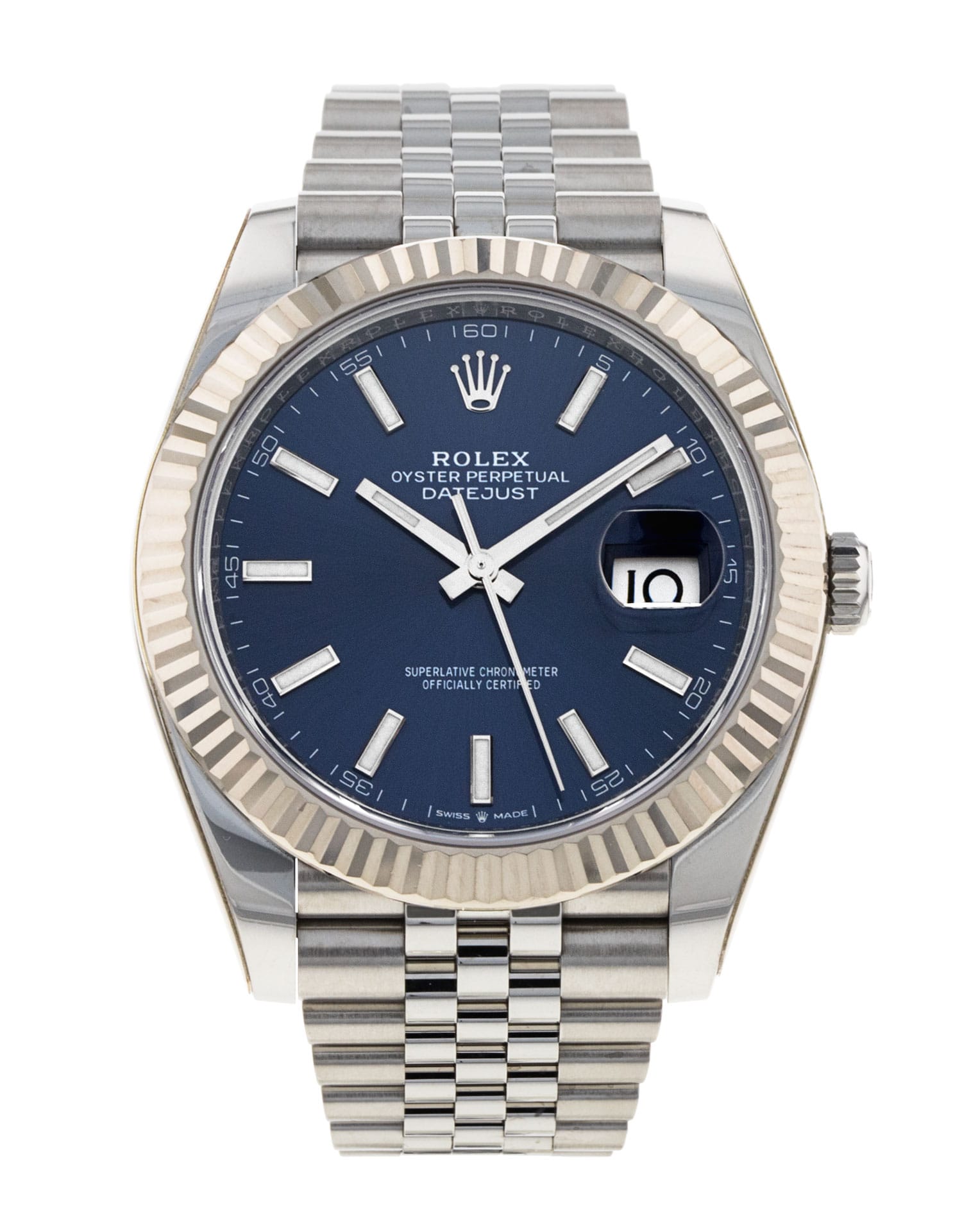 This Rolex Datejust 41 126334 has a blue baton dial and a bracelet strap. This Rolex has undergone a thorough inspection of water resistance, accuracy, functionality and condition to determine the level of reconditioning required to meet our strict standards. It has also been referenced against technical documents and manufacturer records where available to ensure authenticity and a clean history. Our watches have a 24-month warranty for your peace of mind, in conjunction with any remaining manufacturer’s warranty from new or from service. To maintain the manufacturer’s warranty on this watch, it has not been polished in our service centre.