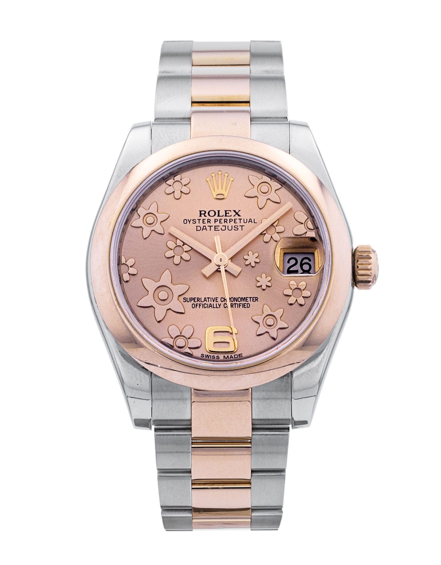 This Rolex Datejust Lady 31 178241 has a pink floral dial and a bracelet strap. This Rolex has undergone a thorough inspection of water resistance, accuracy, functionality and condition to determine the level of reconditioning required to meet our strict standards. It has also been referenced against technical documents and manufacturer records where available to ensure authenticity and a clean history. All our watches have a 24-month warranty for your peace of mind. One of our skilled polishing technicians has removed marks on the case and bracelet of this watch, brought about by daily wear and tear, which is why this watch does not come with the remaining manufacturer’s warranty.