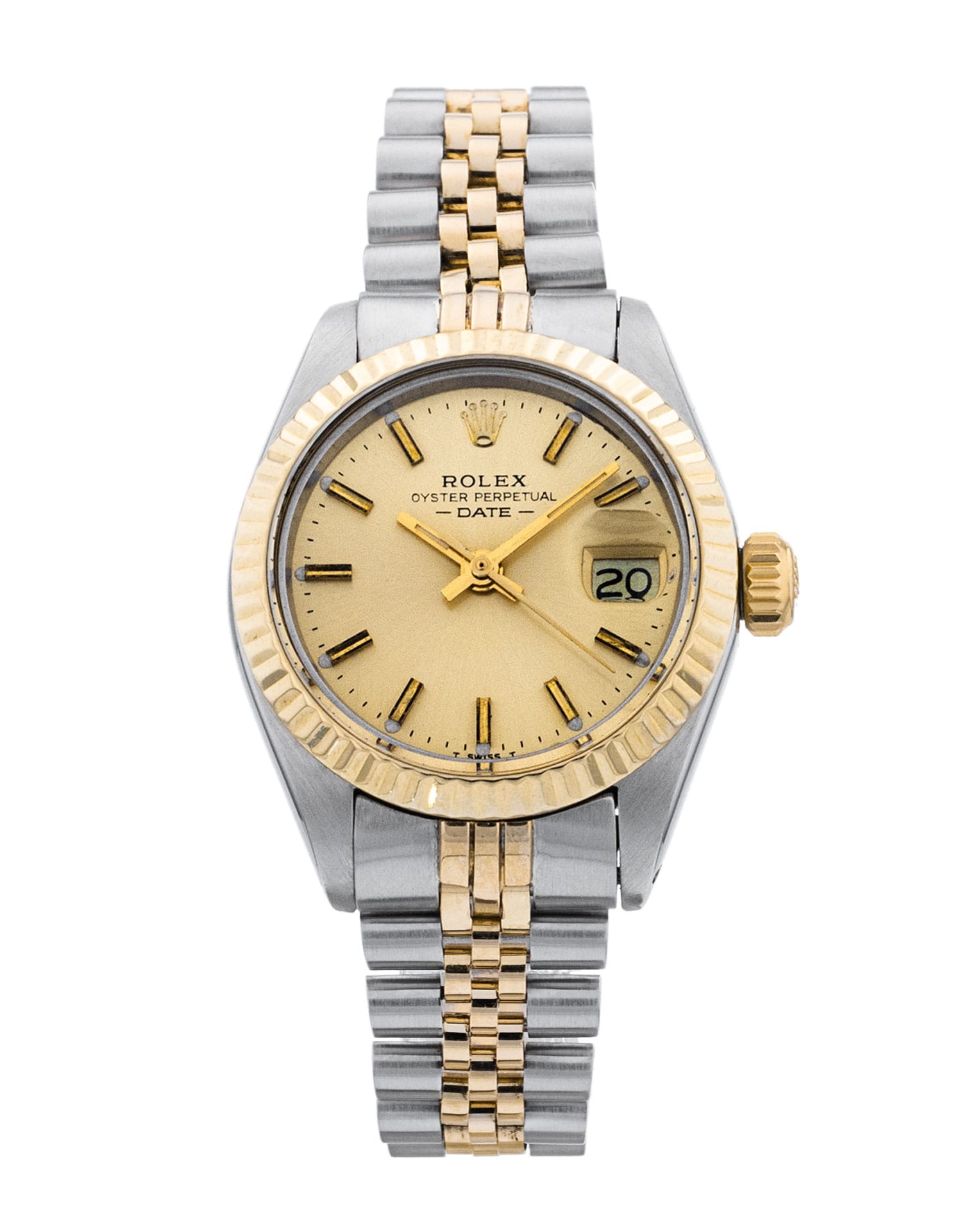 This Rolex Datejust Lady 6917 has a champagne baton dial and a bracelet strap. This Rolex has undergone a thorough inspection of water resistance, accuracy, functionality and condition to determine the level of reconditioning required to meet our strict standards. It has also been referenced against technical documents and manufacturer records where available to ensure authenticity and a clean history. Our watches have a 24-month warranty for your peace of mind, in conjunction with any remaining manufacturer’s warranty from new or from service. To maintain the manufacturer’s warranty on this watch, it has not been polished in our service centre.