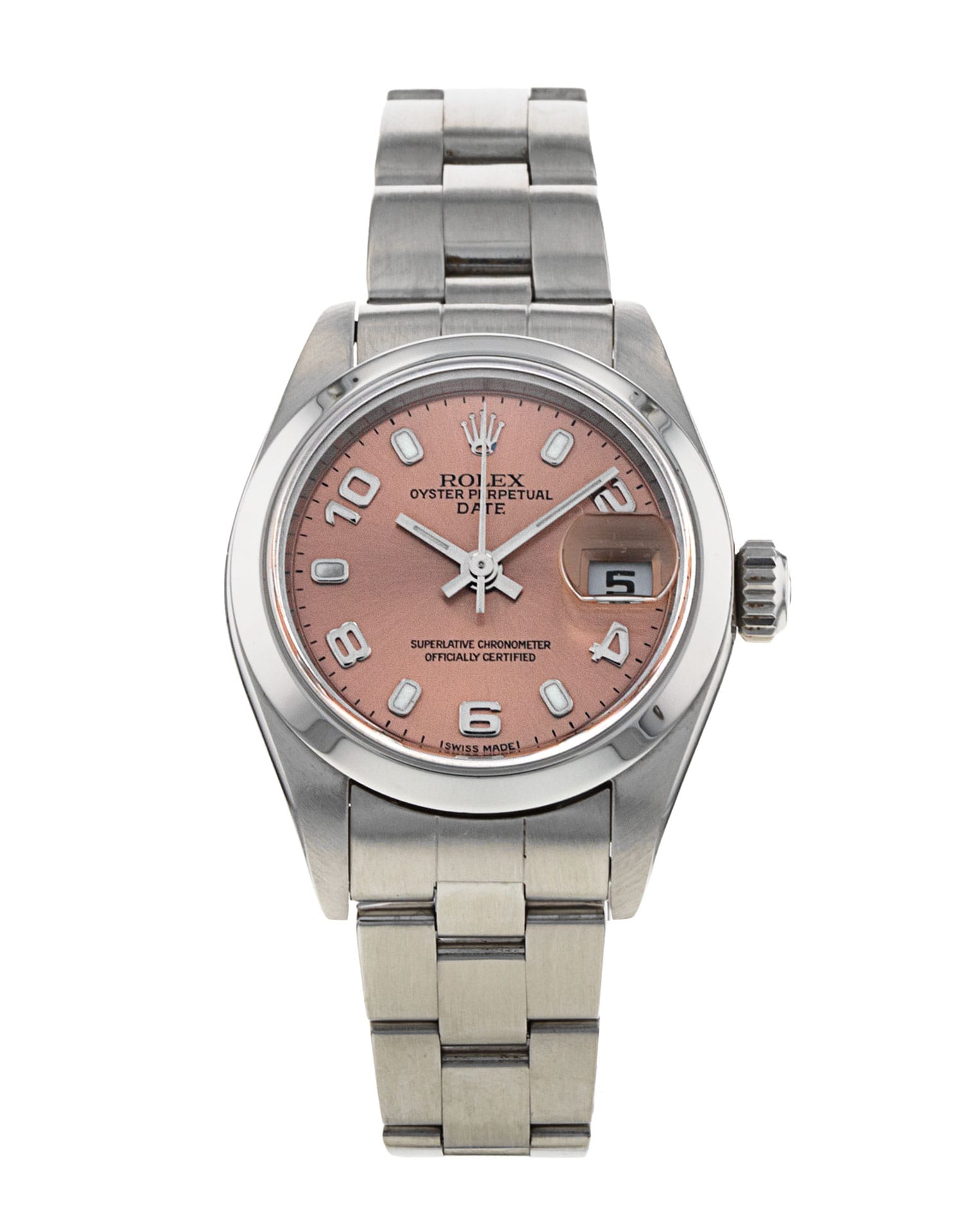 This Rolex Datejust Lady 79160 has a salmon arabic dial and a bracelet strap. This Rolex has undergone a thorough inspection of water resistance, accuracy, functionality and condition to determine the level of reconditioning required to meet our strict standards. It has also been referenced against technical documents and manufacturer records where available to ensure authenticity and a clean history. All our watches have a 24-month warranty for your peace of mind. One of our skilled polishing technicians has removed marks on the case and bracelet of this watch, brought about by daily wear and tear, which is why this watch does not come with the remaining manufacturer’s warranty.