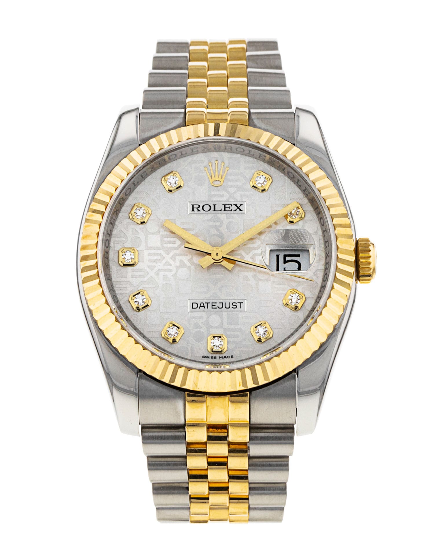 This Rolex Datejust 116233 has a silver jubilee diamond dial and a bracelet strap. This Rolex has undergone a thorough inspection of water resistance, accuracy, functionality and condition to determine the level of reconditioning required to meet our strict standards. It has also been referenced against technical documents and manufacturer records where available to ensure authenticity and a clean history. All our watches have a 24-month warranty for your peace of mind. One of our skilled polishing technicians has removed marks on the case and bracelet of this watch, brought about by daily wear and tear, which is why this watch does not come with the remaining manufacturer’s warranty.