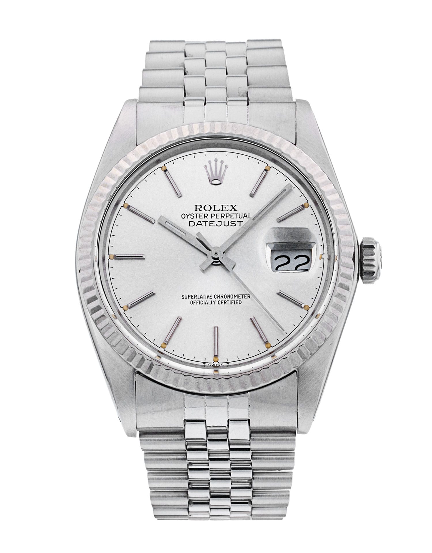 This Rolex Datejust 16014 has a silver baton dial and a bracelet strap. This Rolex has undergone a thorough inspection of water resistance, accuracy, functionality and condition to determine the level of reconditioning required to meet our strict standards. It has also been referenced against technical documents and manufacturer records where available to ensure authenticity and a clean history. Our watches have a 24-month warranty for your peace of mind, in conjunction with any remaining manufacturer’s warranty from new or from service. To maintain the manufacturer’s warranty on this watch, it has not been polished in our service centre.