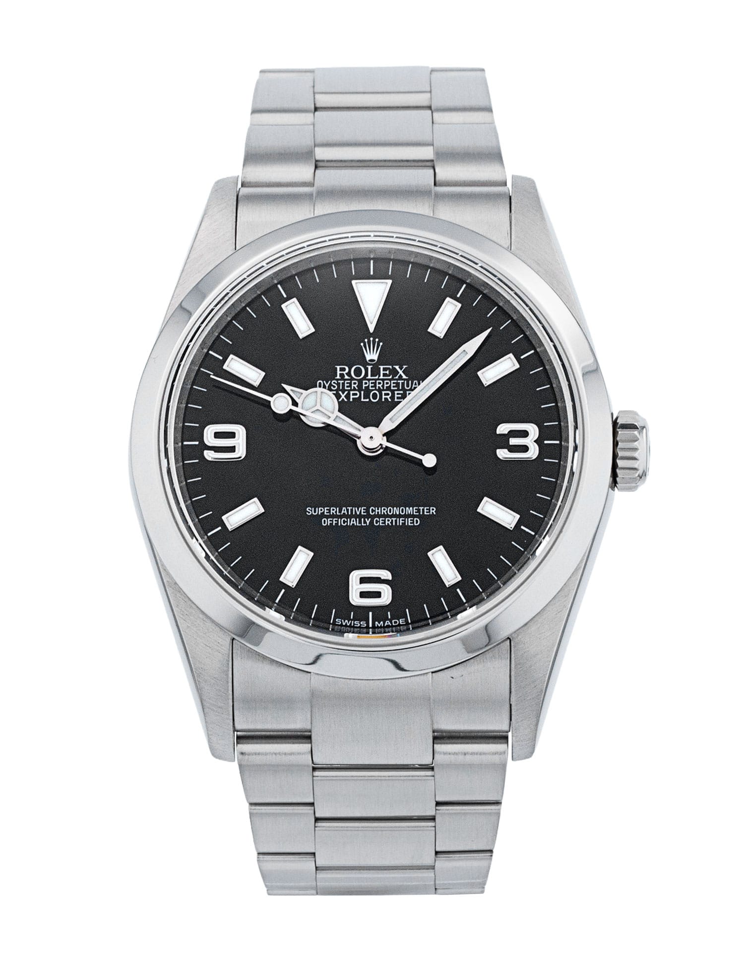 This Rolex Explorer 114270 has a black quarter arabic dial and a bracelet strap. This Rolex has undergone a thorough inspection of water resistance, accuracy, functionality and condition to determine the level of reconditioning required to meet our strict standards. It has also been referenced against technical documents and manufacturer records where available to ensure authenticity and a clean history. All our watches have a 24-month warranty for your peace of mind. One of our skilled polishing technicians has removed marks on the case and bracelet of this watch, brought about by daily wear and tear, which is why this watch does not come with the remaining manufacturer’s warranty.