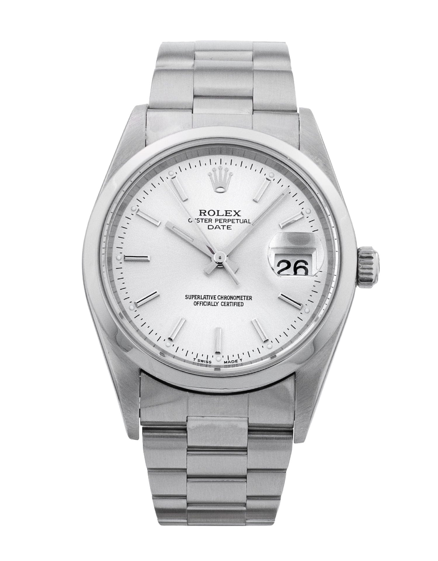 This Rolex Oyster Perpetual Date 15200 has a silver baton dial and a bracelet strap. This Rolex has undergone a thorough inspection of water resistance, accuracy, functionality and condition to determine the level of reconditioning required to meet our strict standards. It has also been referenced against technical documents and manufacturer records where available to ensure authenticity and a clean history. All our watches have a 24-month warranty for your peace of mind. One of our skilled polishing technicians has removed marks on the case and bracelet of this watch, brought about by daily wear and tear, which is why this watch does not come with the remaining manufacturer’s warranty.