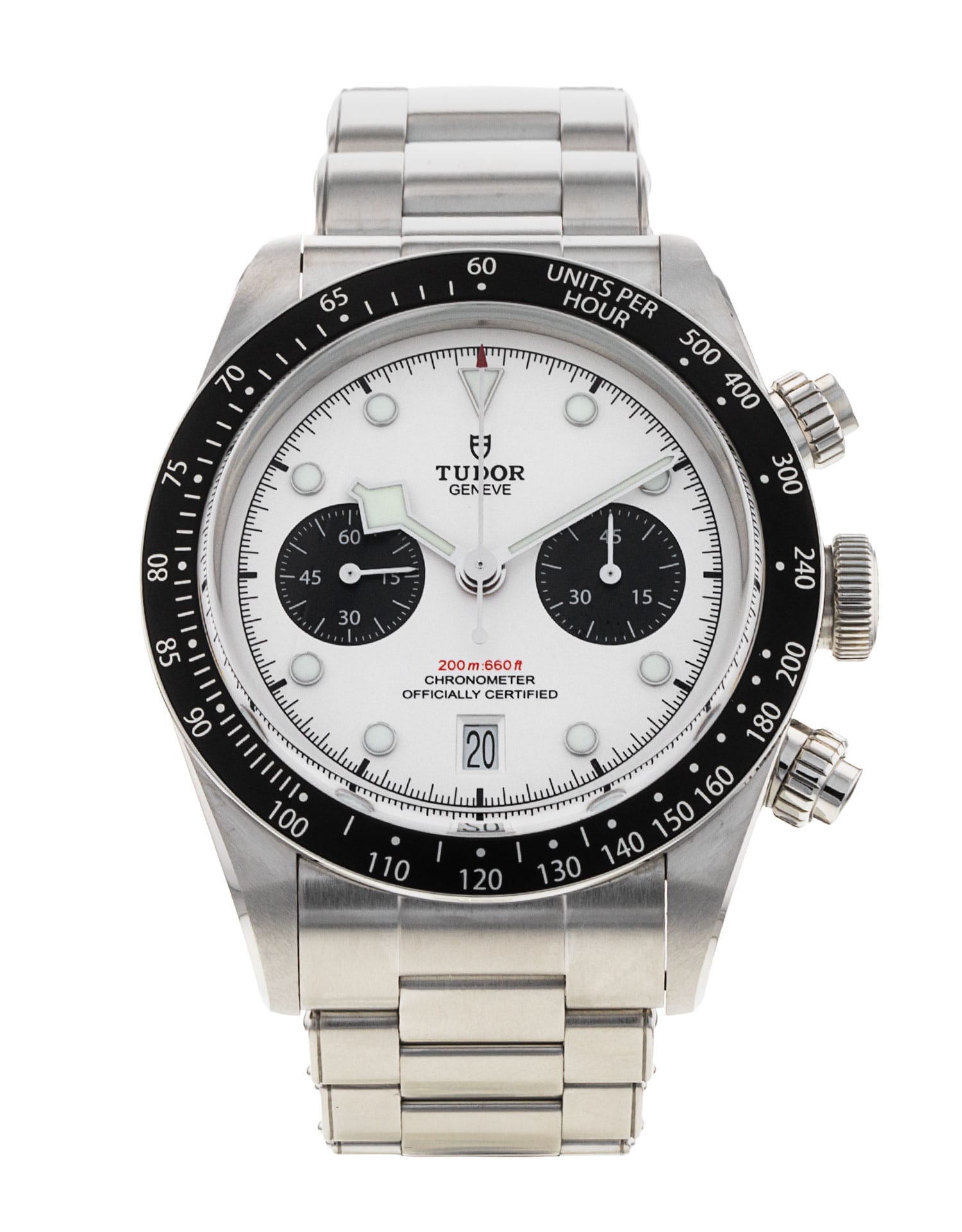 This Tudor Black Bay Chrono M79360N-0002 has a white dial and a bracelet strap. This Tudor has undergone a thorough inspection of water resistance, accuracy, functionality and condition to determine the level of reconditioning required to meet our strict standards. It has also been referenced against technical documents and manufacturer records where available to ensure authenticity and a clean history. Our watches have a 24-month warranty for your peace of mind, in conjunction with any remaining manufacturer’s warranty from new or from service. To maintain the manufacturer’s warranty on this watch, it has not been polished in our service centre.
