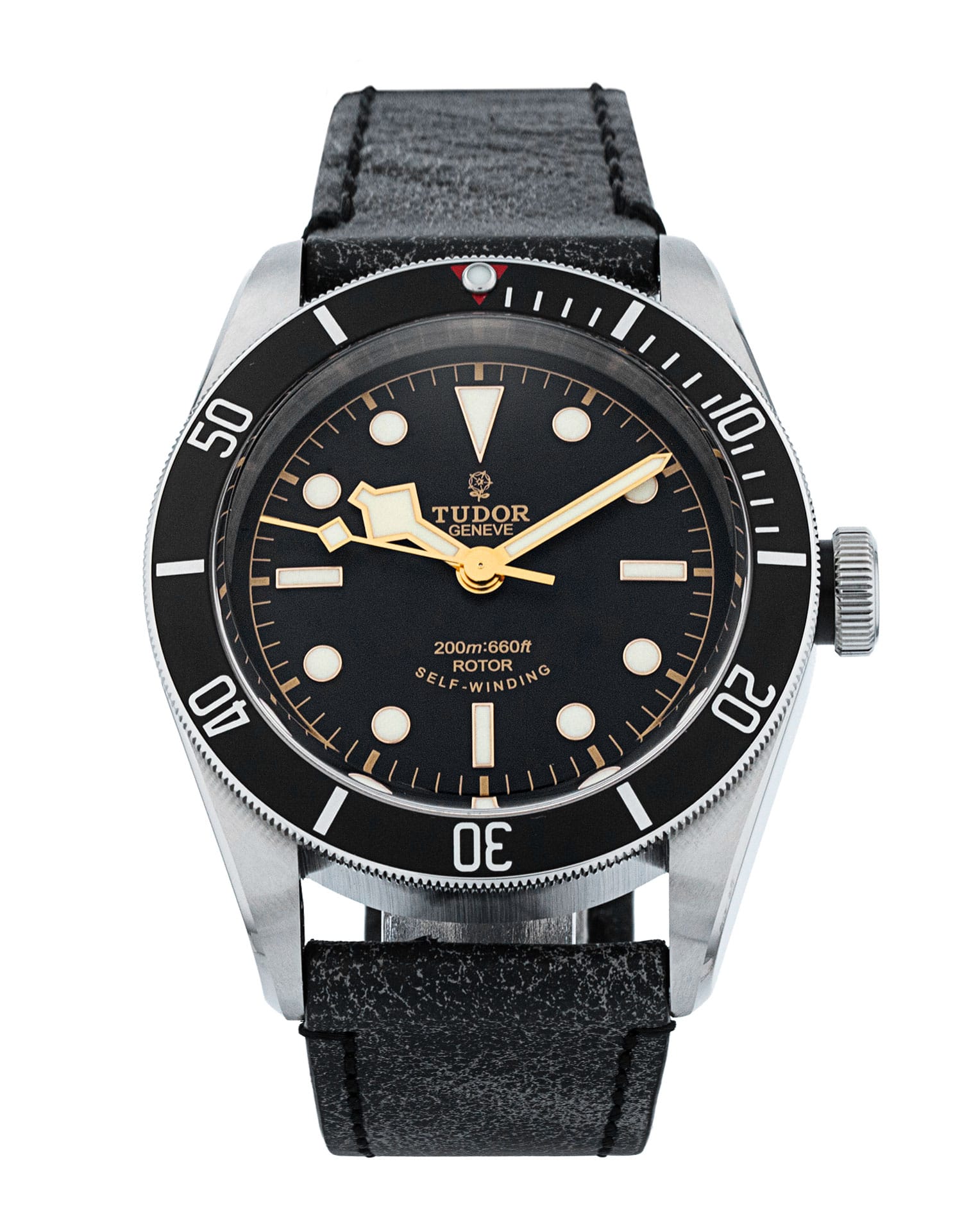 This Tudor Heritage Black Bay 79220N has a black dial and a leather strap. This Tudor has undergone a thorough inspection of water resistance, accuracy, functionality and condition to determine the level of reconditioning required to meet our strict standards. It has also been referenced against technical documents and manufacturer records where available to ensure authenticity and a clean history. All our watches have a 24-month warranty for your peace of mind. One of our skilled polishing technicians has removed marks on the case and bracelet of this watch, brought about by daily wear and tear, which is why this watch does not come with the remaining manufacturer’s warranty.